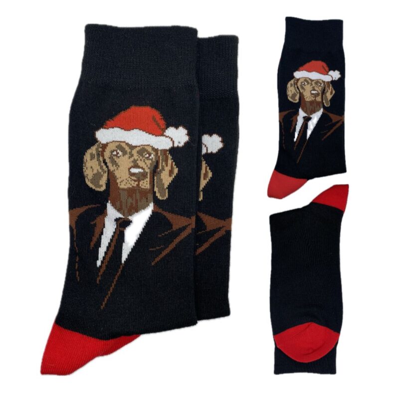 Βαμβακερές Unisex κάλτσες με απεικόνιση σκύλος ντυμένος Άγιος Βασίλης.